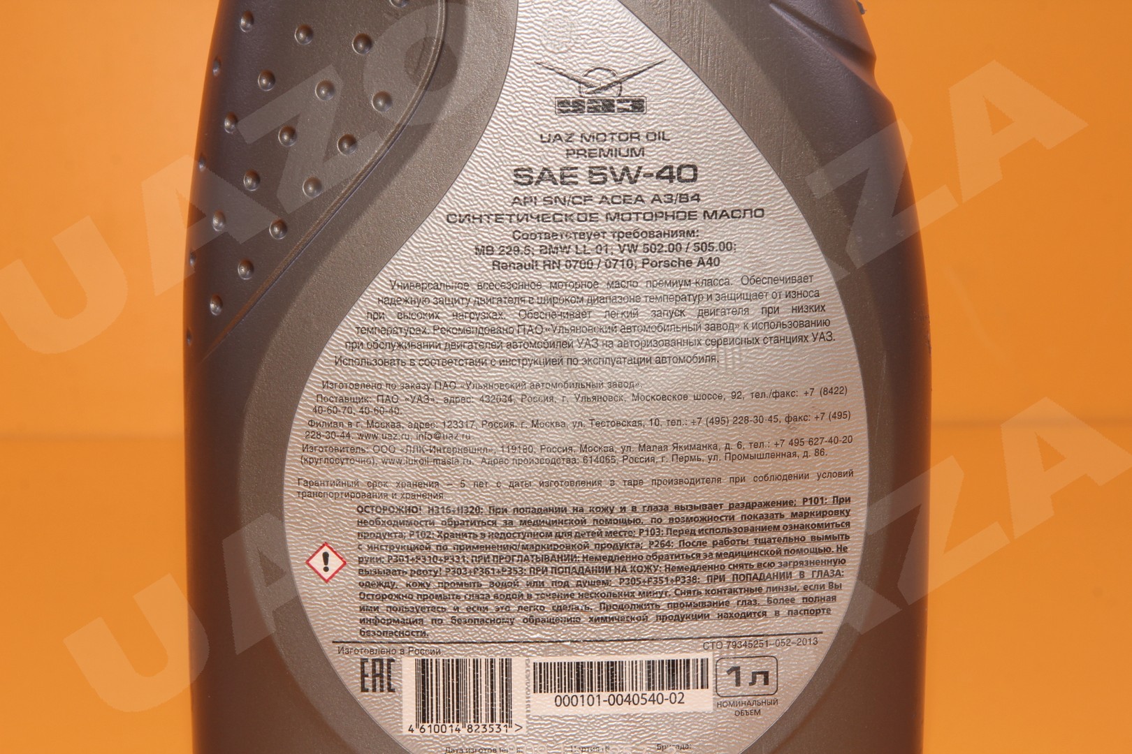 Масло моторное (дв. ЗМЗ-409; УМЗ-4213, 4216) 1 л, синтетическое UAZ MOTOR OIL PREMIUM 5W-40 "ЛУКОЙЛ"